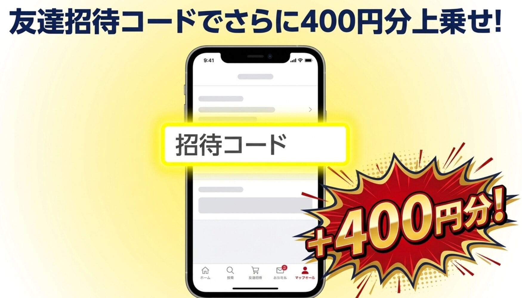 初めての購入と出品で1,000ポイント、さらに招待コードの活用で400ポイントと、合計1,400円分もの還元を受けられるチャンスは見逃せません。