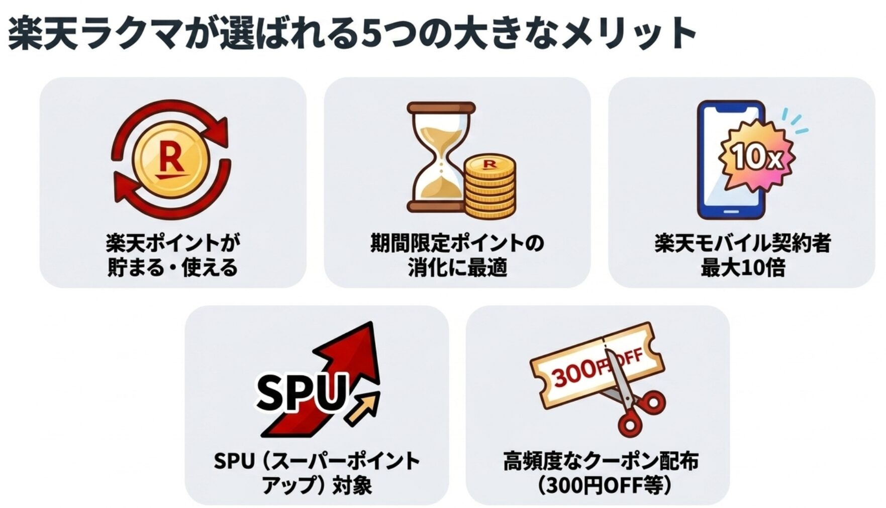特に楽天モバイルユーザーや楽天カードをお持ちの方なら、その恩恵はさらに大きくなります。