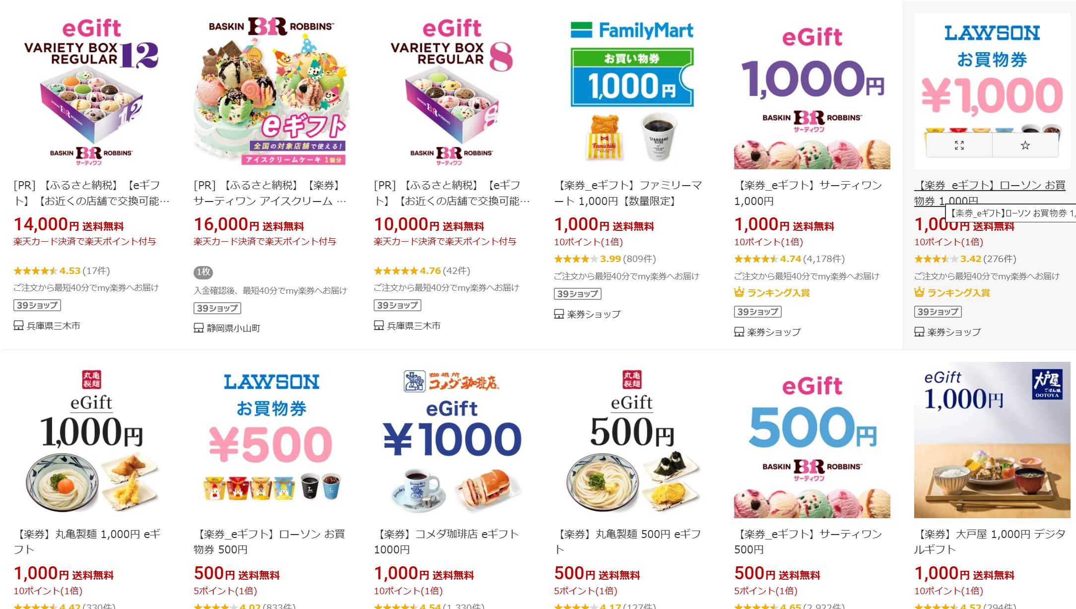 楽天市場で楽券のデジタルギフトをチェックしてみる