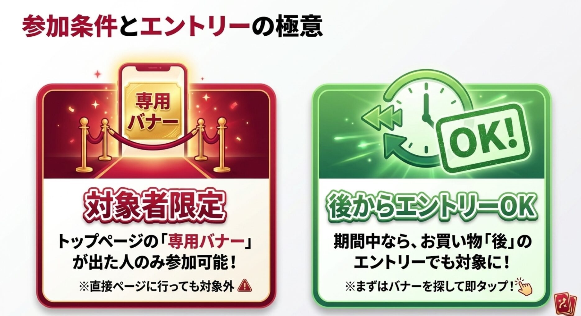 しかし、このキャンペーンには「エントリー必須」「対象者限定」「先着順」といった、見落とすと損をする重要なルールがいくつかあります。