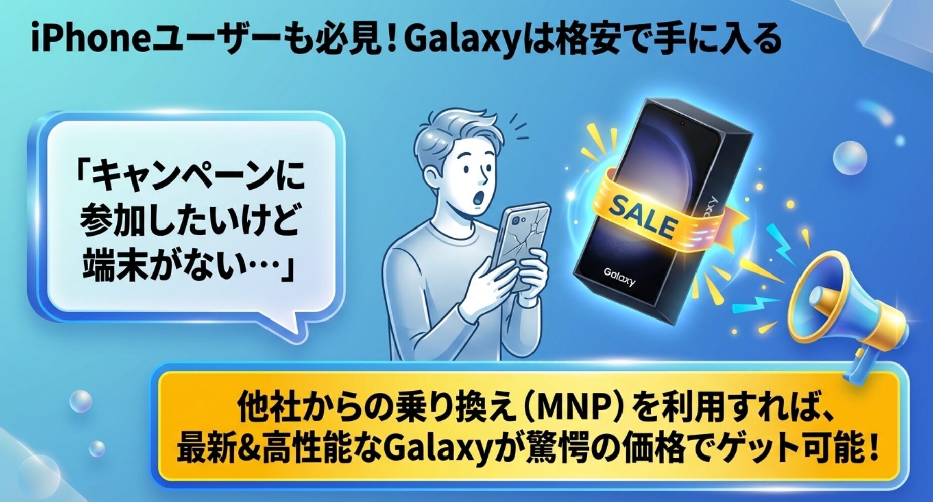 2026年3月現在、他社からの乗り換え(MNP)を利用すれば、最新のGalaxyシリーズが驚きの価格で手に入ります。