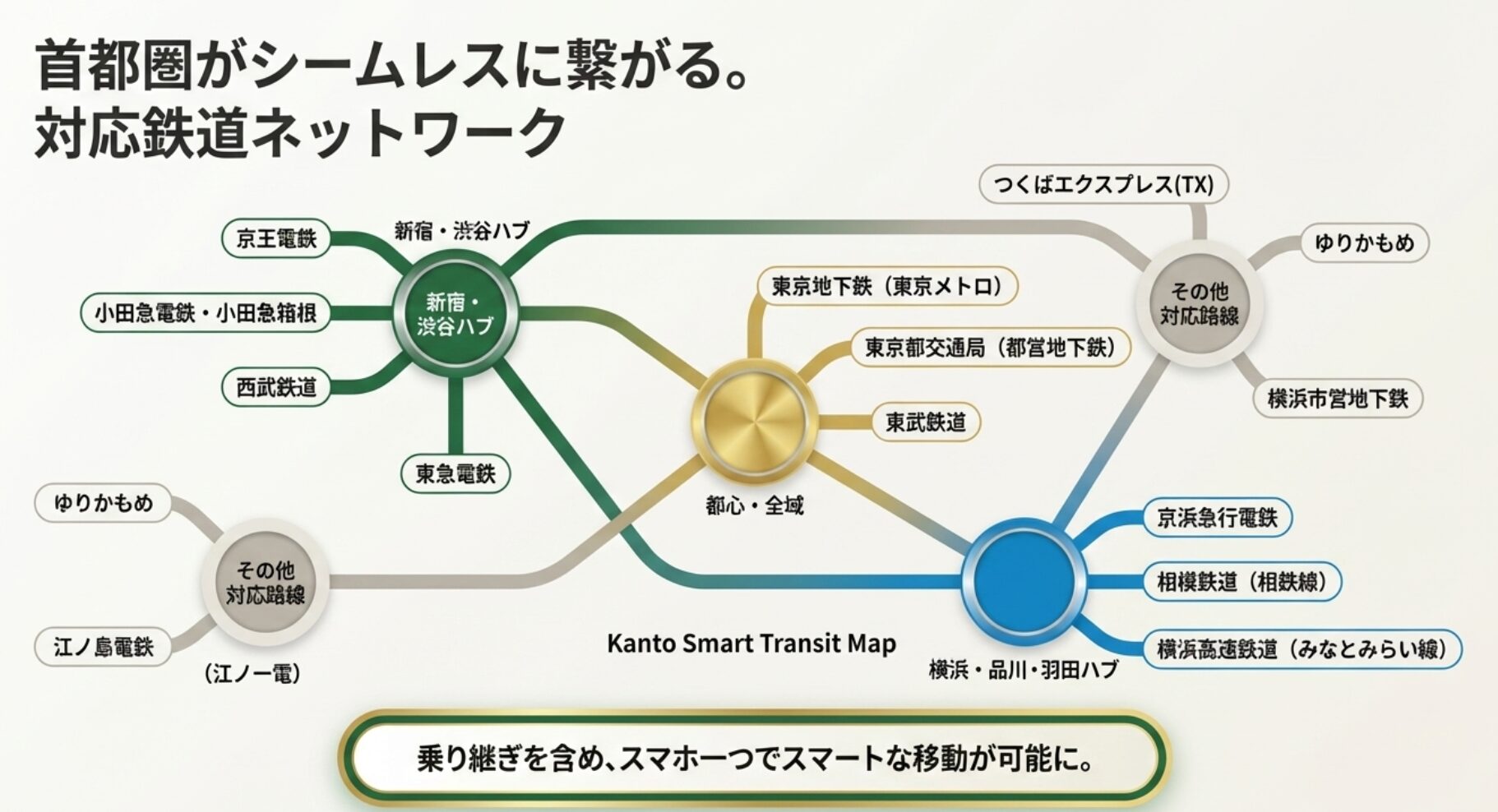 首都圏では東京メトロや東急、西武、小田急など主要11社局が対応し 、スマホ一つでチャージ不要のスマートな移動が可能になりました 。