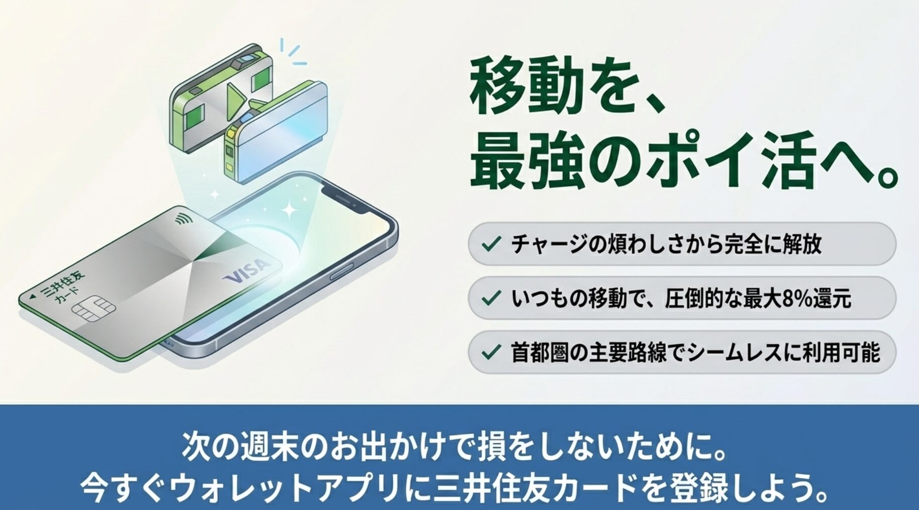2026年4月13日から始まった三井住友カードの「スマホのタッチ決済乗車で最大8%還元」は、私たちの移動スタイルを大きく変えるサービスです 。