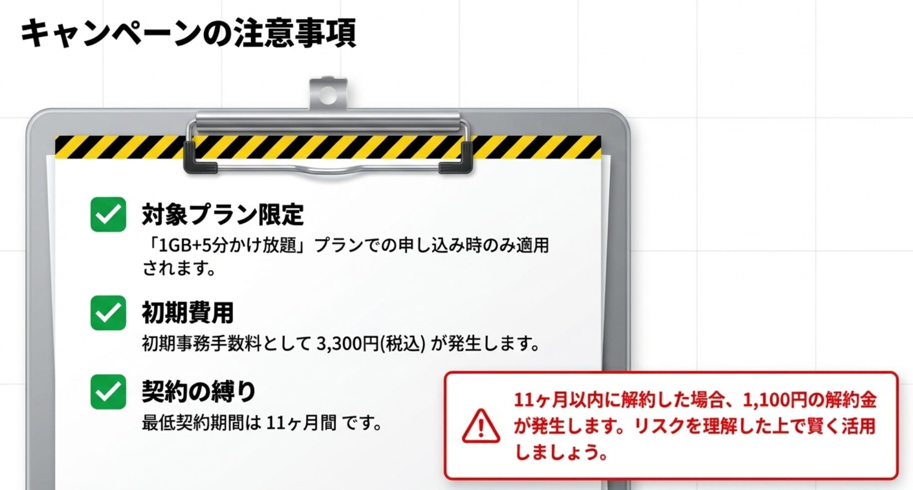 エックスモバイルの半年間無料プランですが、いくつか注意点がありますので整理しておきましょう。