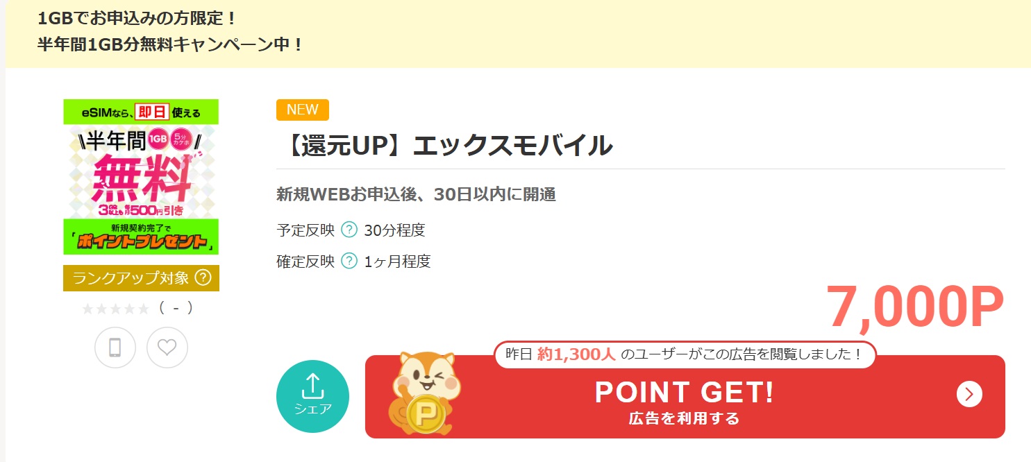 現在実施中の「半年間無料」と「モッピー経由の7,000円還元」を組み合わせれば、スマホを利用しながらお小遣いが発生するような驚異的なキャンペーン状況となっています。